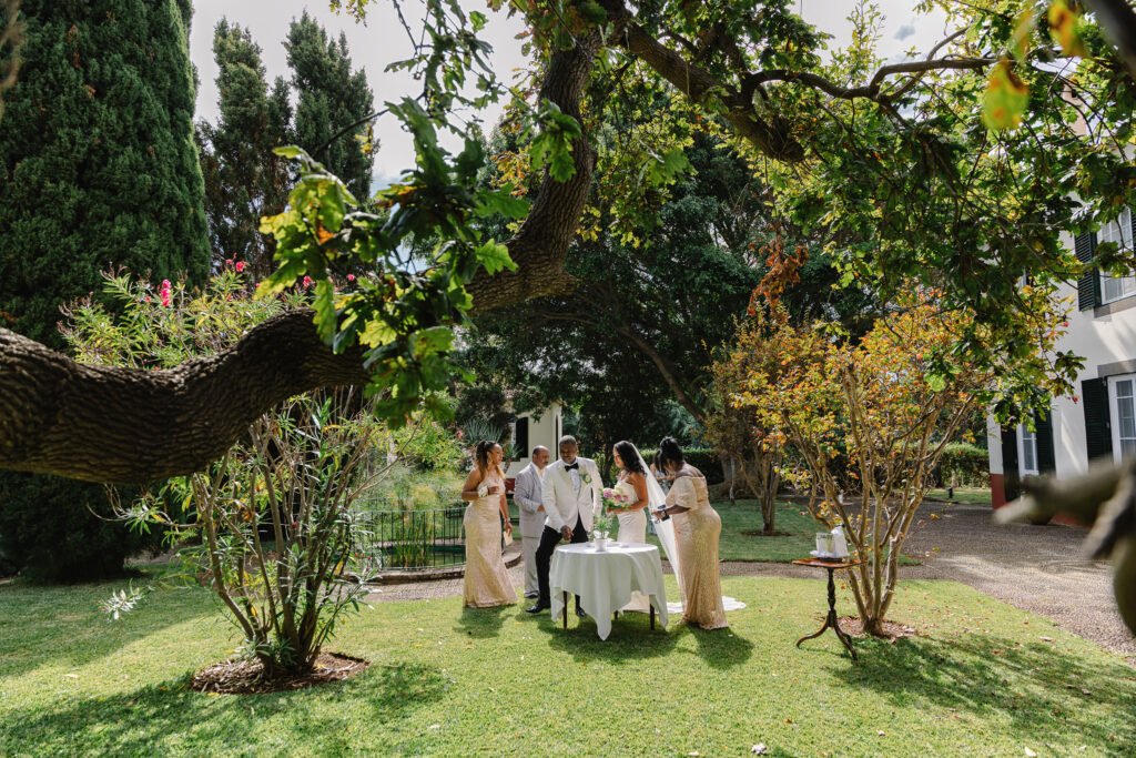 However, as the wedding date approached, Madeira’s famous “micro-climates” began to show their unpredictable side. Understanding that a mountaintop ceremony in heavy mist or wind might detract from the intimacy of their vows, Veda made the eleventh-hour decision to pivot. She opted instead for the grounded, protected beauty of the gardens at Quinta Bela Vista.