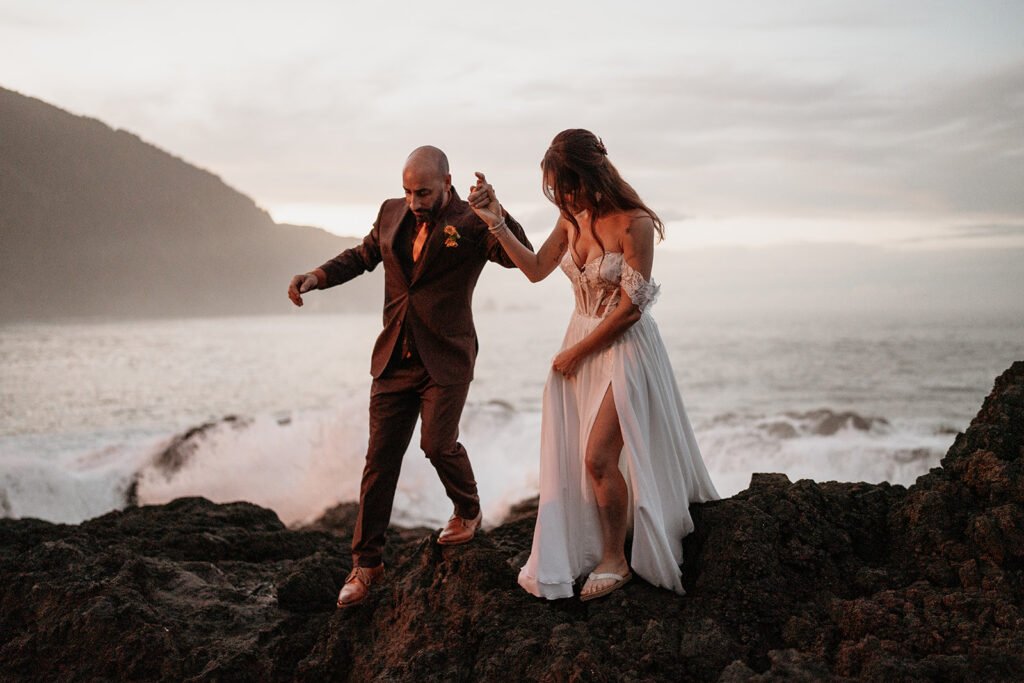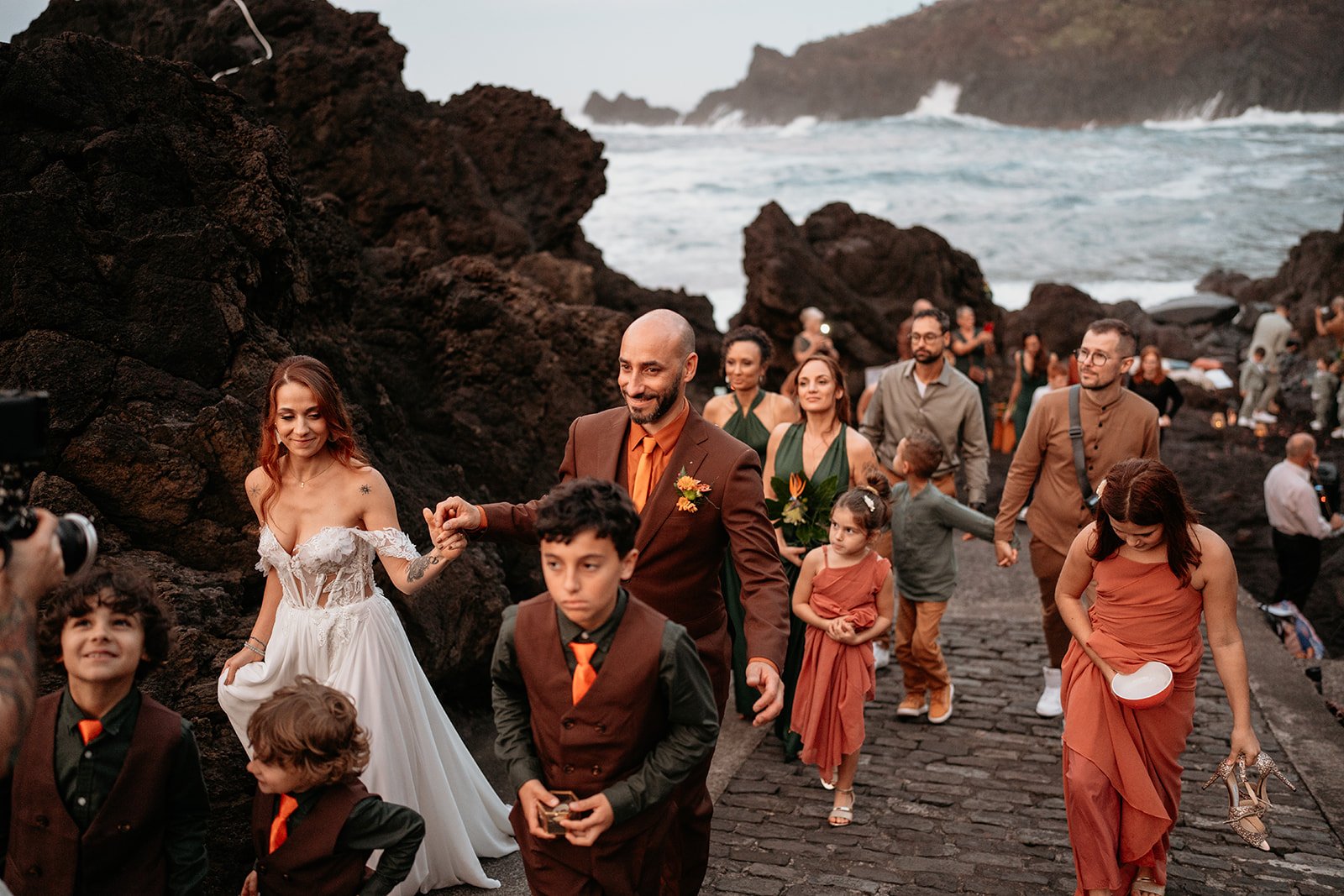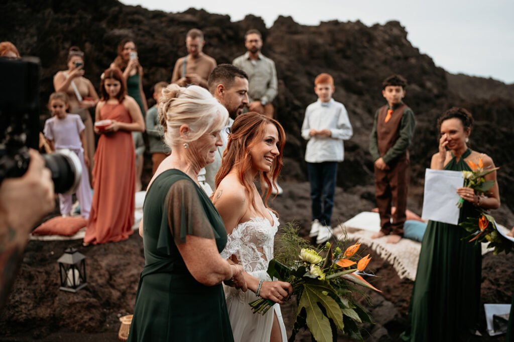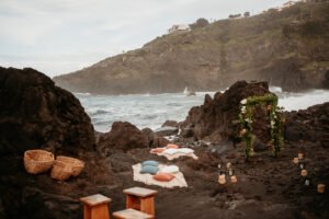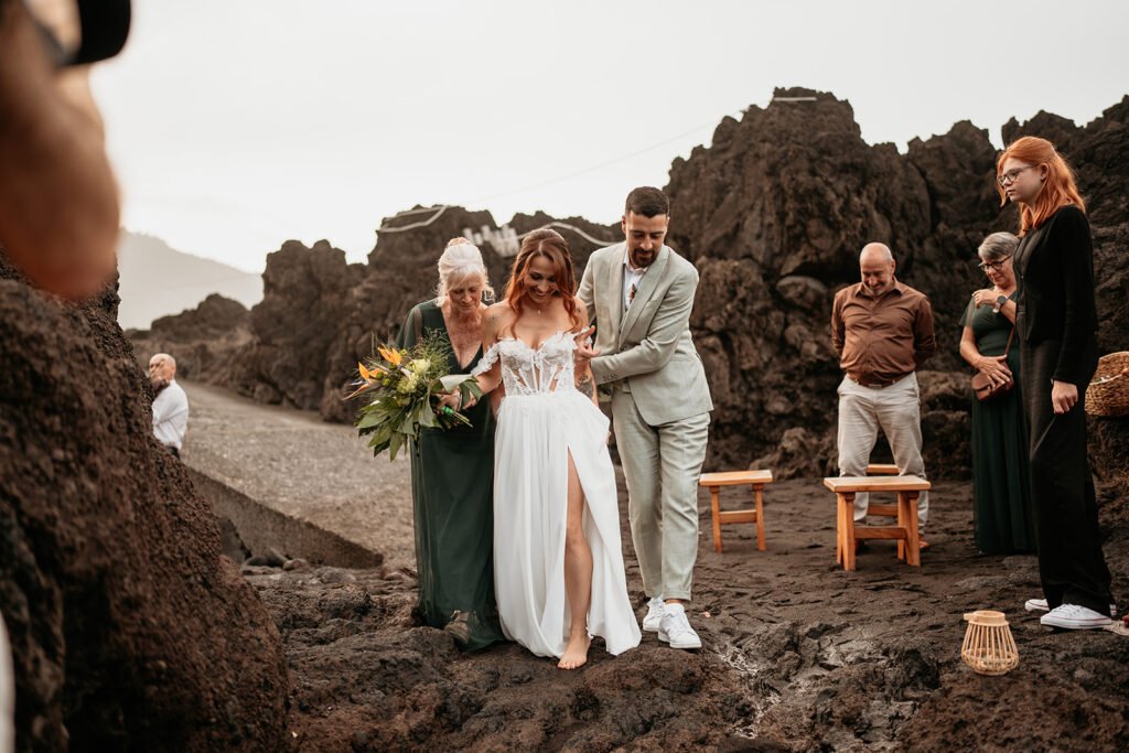 While a moment like this could derail any wedding, the Madeira Weddings team moved into “pivot mode.” We focused on what mattered: the feeling. When the couple arrived, the beach was clean, the atmosphere was electric, and the lack of “stuff” only highlighted the stunning natural beauty of the volcanic cliffs. It was a perfect “Beauty in the Storm” moment.
