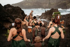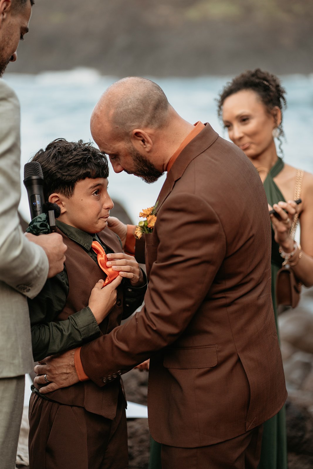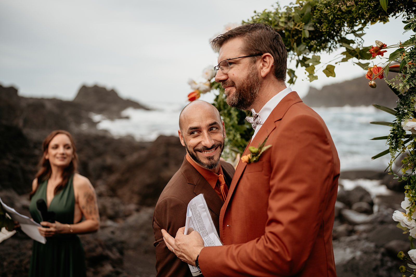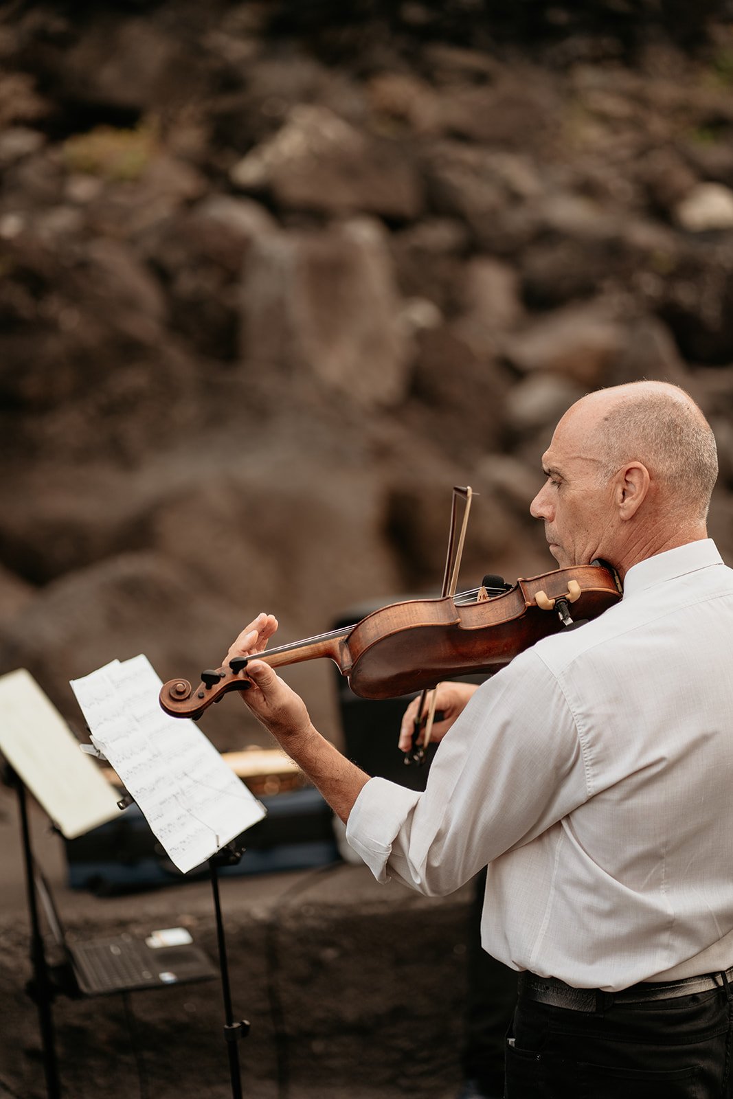 The ceremony was a sensory masterpiece. As Rolando blended the sounds of the violin and saxophone with the crashing Atlantic waves, Jennifer walked across the black sand.