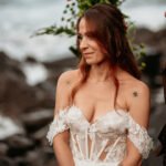 Despite being petite (1m54), Jennifer commanded the beach. Her “French Beauty” look, styled by Mary Cafora, was luminous and natural, perfectly proportioned with a custom-designed bouquet that didn’t overwhelm her frame.
